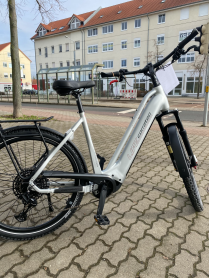 Alu-Rahmen, hydraulische Scheibenbremse, Federgabel, Steckachse vorn und hinten, Schiebehilfe